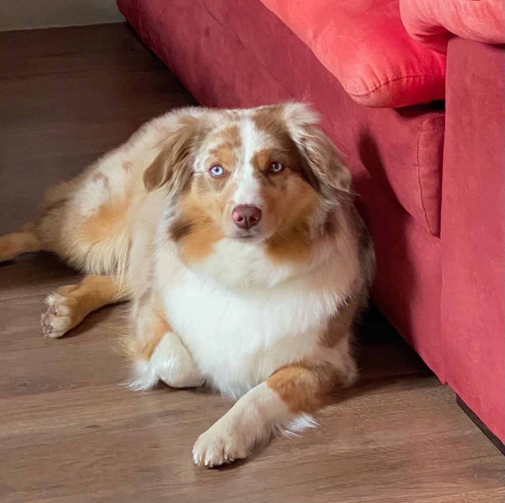 | Couleur | Merle rouge tri aux yeux bleus |